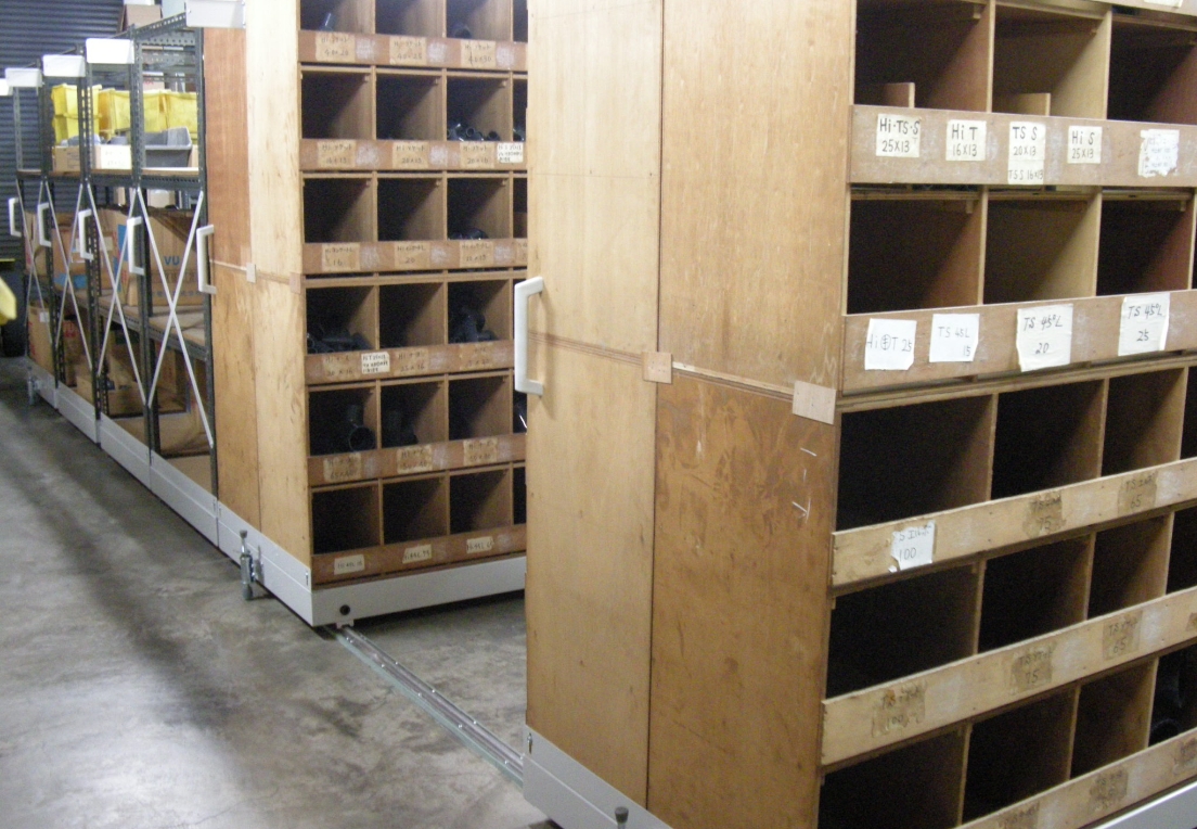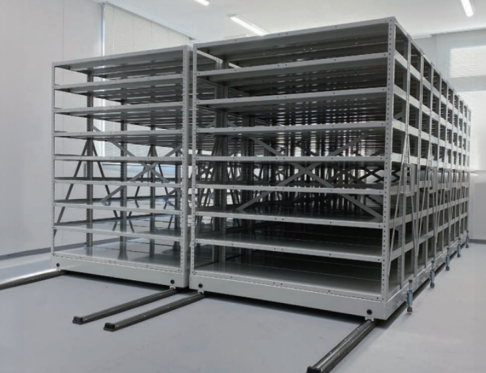 地震に強い「サンレール移動棚」は倉庫・バックヤード・商品倉庫・物流センターなど、