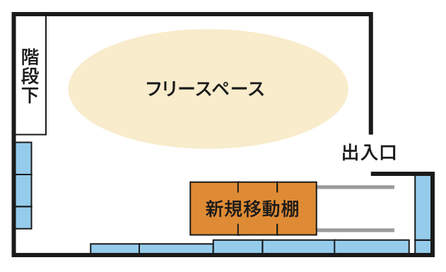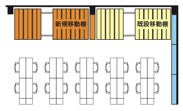 移動棚は、圧倒的な省スペースに